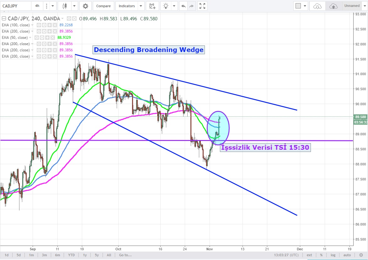 TSİ 15:30 'da Kanada 'dan gelen beklenti üzeri işssizlik verileri (35.3K vs 15K) CAD boğalarını harekete geçirdik