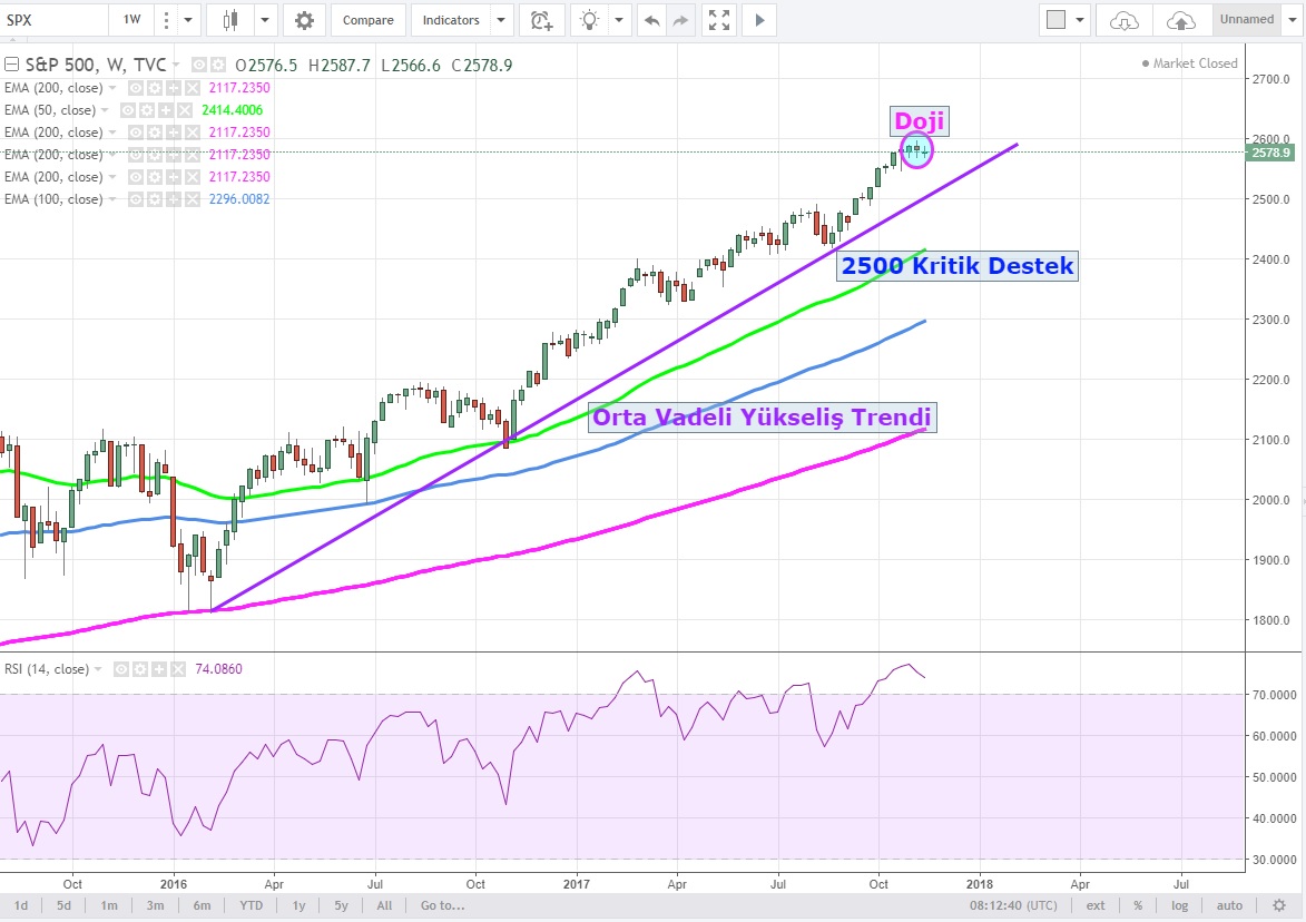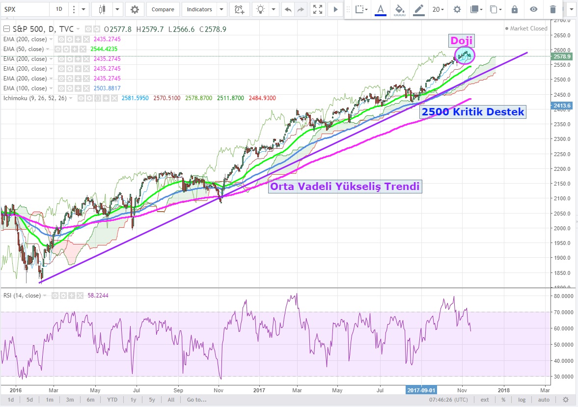 Günlük grafiklerde ise yükseliş trendinin destek noktası 2500 seviyesinde