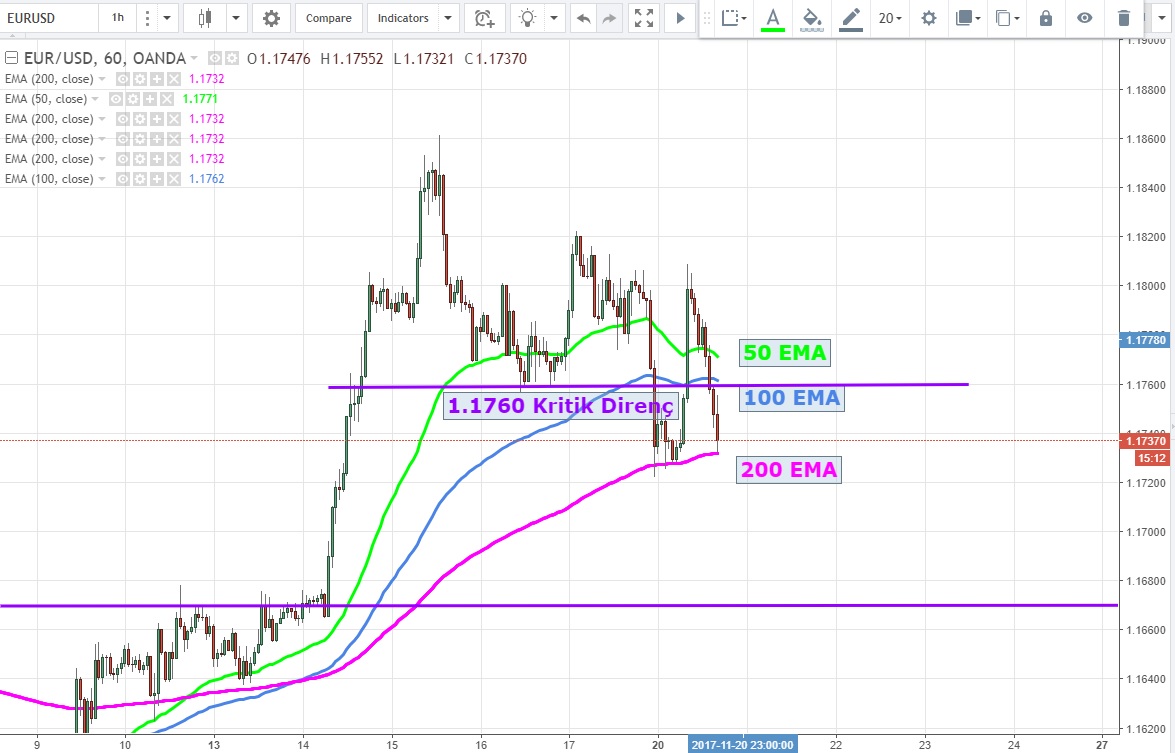1.1720 bölgesinin kırılması satışları kısa vadede de hızlandırabilir