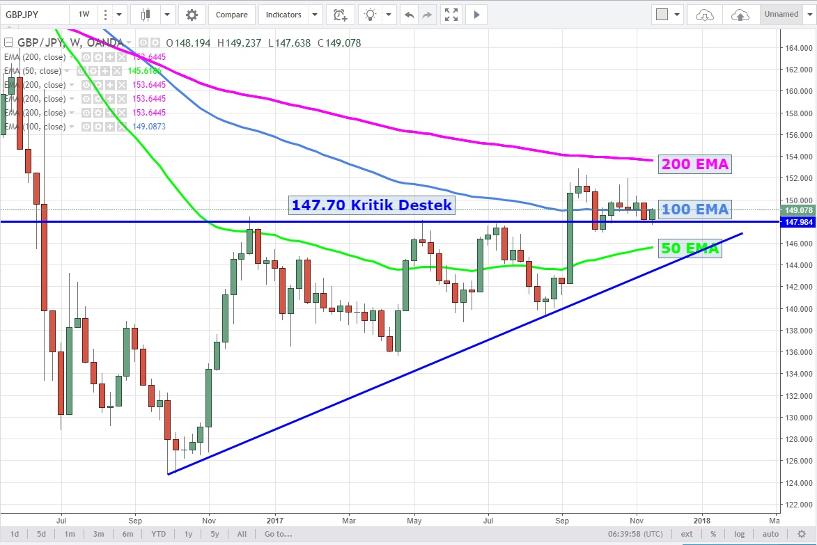 Haftalık grafiklerde daha önce de konuştuğumuz 147.70 direnci kritik