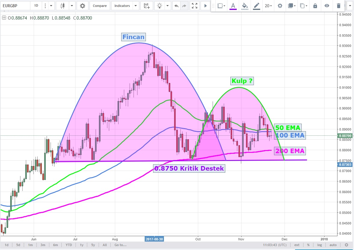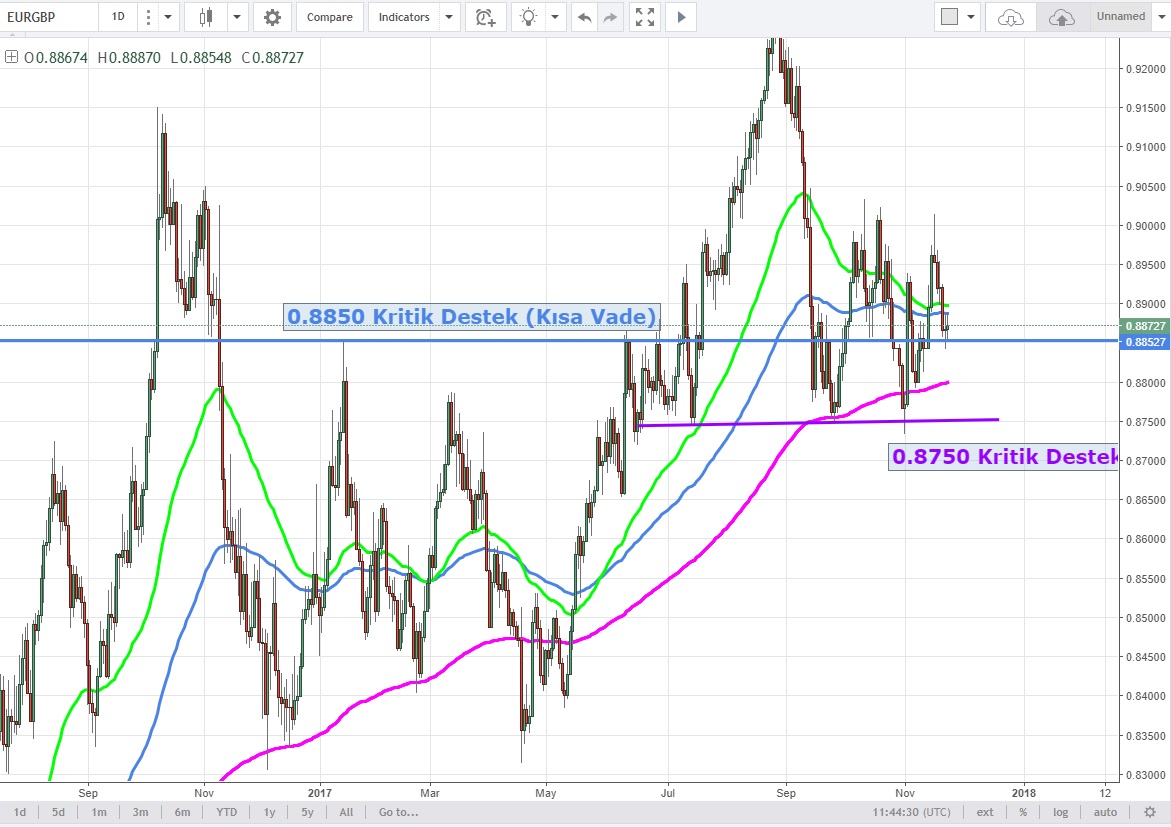 0.8850 desteği kritik ve kırılması ile birlikte ilk olarak 0.88 seviyesine doğru bir geri çekilme beklerim