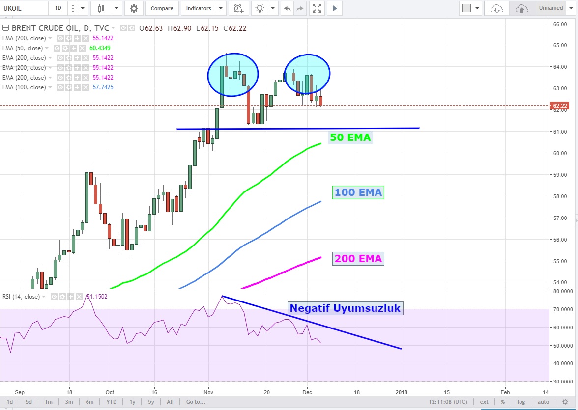 Günlük grafiklerde 2. tepede RSI 'ın negatif uyumsuzluk vermesi önemli bir işaret