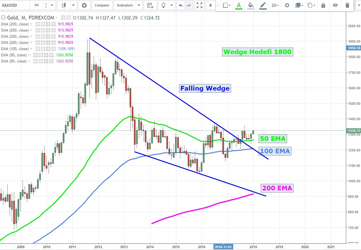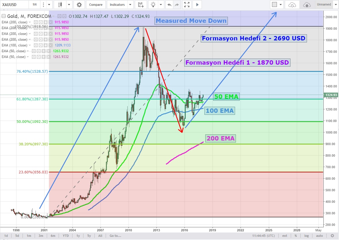 Aylık grafiklerde ise Measured Move Down formasyonu ve 260 USD seviyelerinden başlayan yükselişin % 50 düzeltmesi 1050 USD 'de tamamlanmış durumda