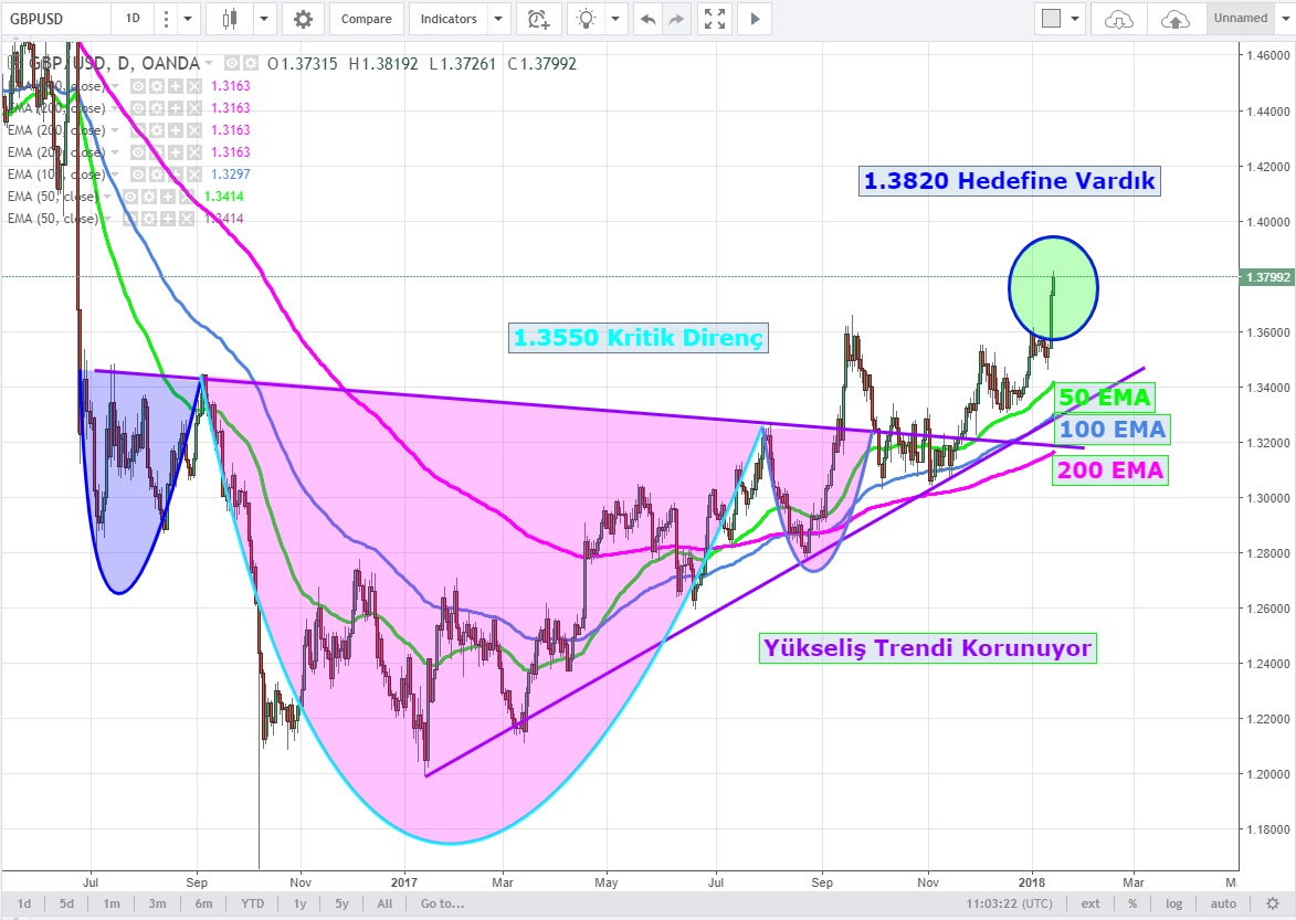 Teknik olarak 1.3820 hedefine varan GBPUSD Futures aktif vadeli kontratlarda 1.3450 üzerinde kaldığı sürece 1.4070 seviyesine doğru orta vadeli hareketin devamını beklerim
