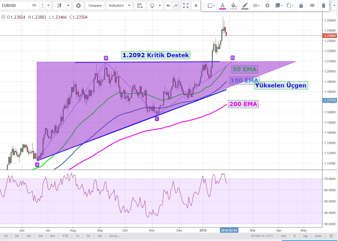 1.2330 seviyesi kırıldıktan sonra 1.24 üzeri kapanışlar formasyonu bozacaktır