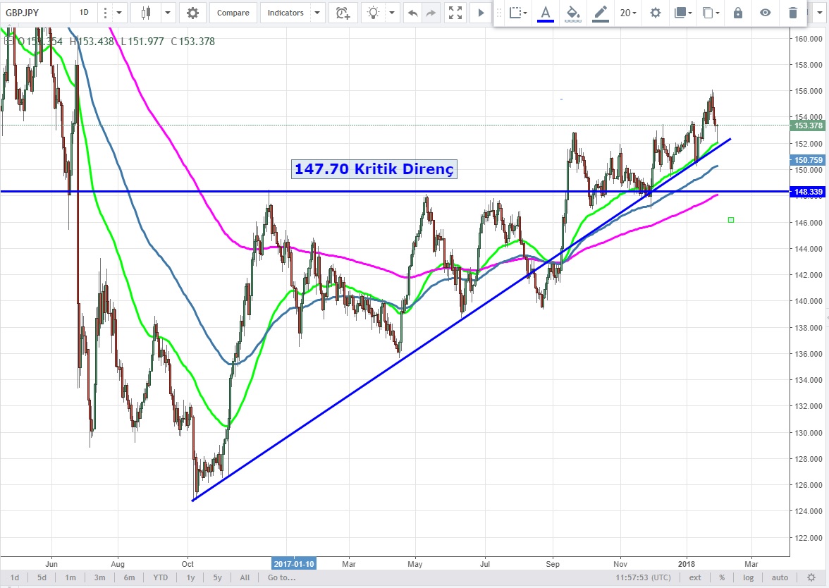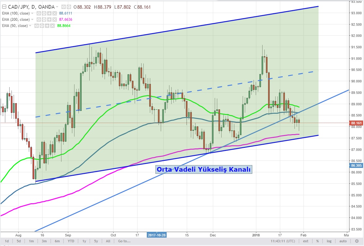 Günlük grafiklerde ise orta vadeli yükseliş kanalını koruyan parite için 86.70 kritik destek