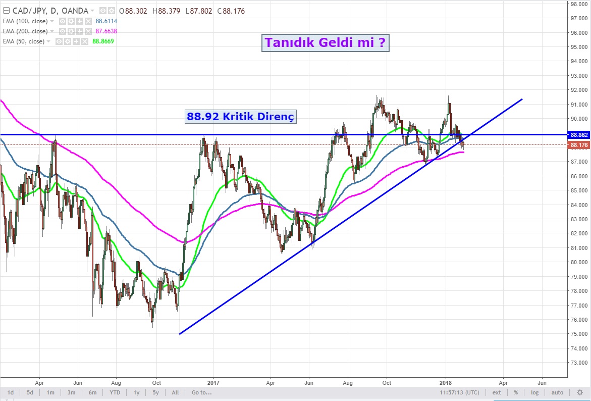 88.92 direnci üzeri haftalık kapanışlar ile CAD boğaları oyuna dönebilir ve sırası ile