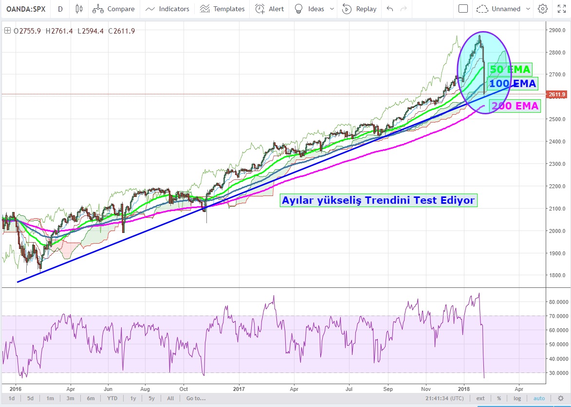 Günlük grafiklerde ayılar yaklaşık 2 senedir düzeltmesiz giden yükseliş trendini test ediyor