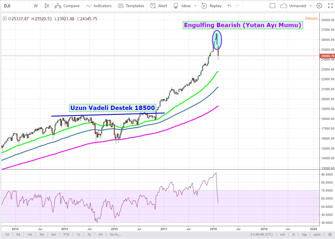 Cuma kapanışında gerçekleşen Engulfing Bearish Candle ile (Yutan Ayı Mumu) büyük düşüşün ayak seslerini duyurmuştu