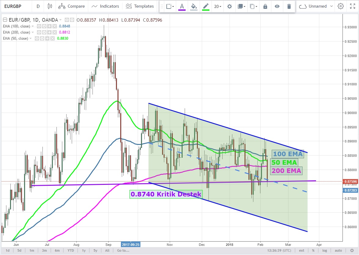 0.8740 desteği çok kritik ve bu sevi altında günlük kapanış Draghi 'nin Euro 'sunu çok daha aşağılara itebilir