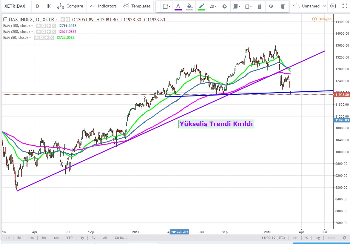 Teknik grafiklerin S.O.S vermeye başladığı DAX Futures aktif vadlei kontratları için