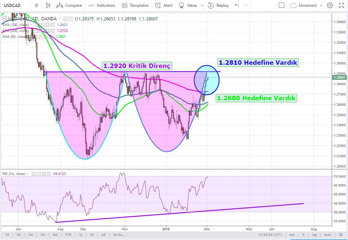 Teknik olarak çift dip formasyonu tamamlamak üzere olan parite 1.2910 üzeri günlük kapanış yaptığında çok daha yukarıları konuşacağız