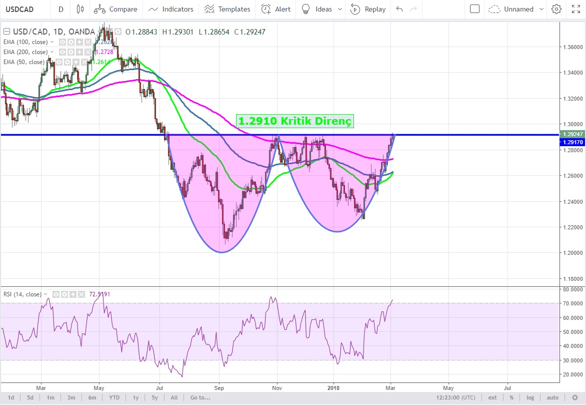 1.2910 üzeri günlük kapanışlar çift dip formasyonunu tamamlayacaktır. Bu durumda sırası ile