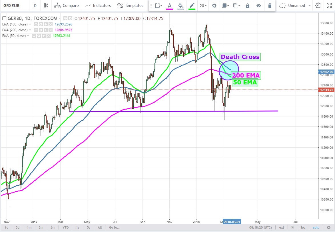 DAX Futures aktif vade kontratlarında teknik analistlerin death cross adını verdiği formasyon oluştu