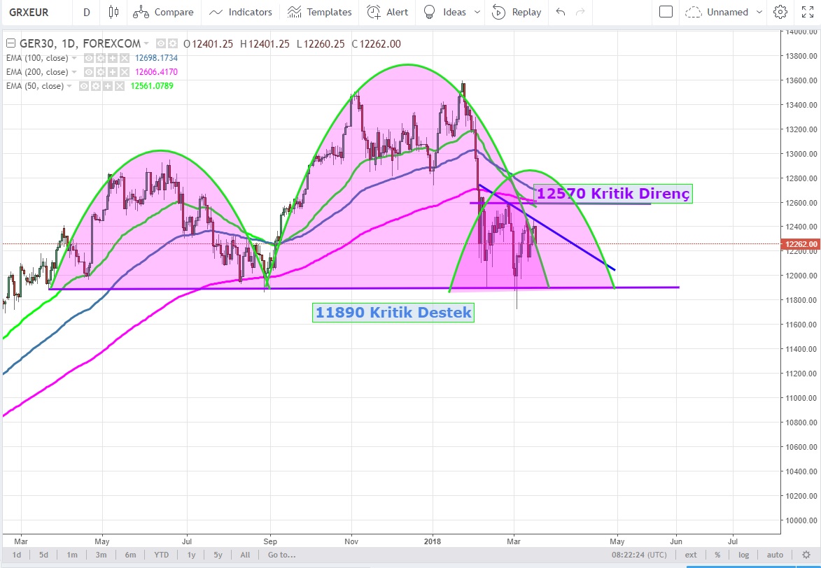 DAX Futures aktif vade kontratları için asıl tehlike ise 11890 desteği kırılırsa gerçekleşecek
