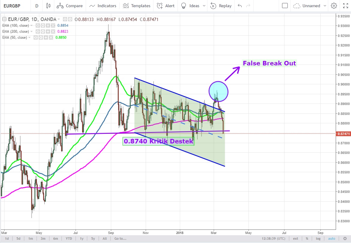 Düşüş trendinin ise false - break out yaparak tekrar içine dönmesi Sterlin 'in Euro karşısında güç kazanması ihtimalini teknik olarak arttırıyor