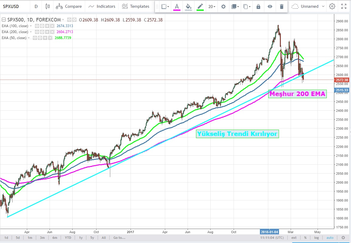 Haftalık grafiklerde yükseliş trendini kırmak üzere olan endeksin 50 EMA altına sarkması dikkat çekiyor