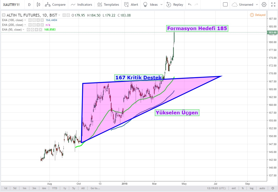 ve yükselen üçgenin formasyon hedefi 185 olarak öne çıkıyor