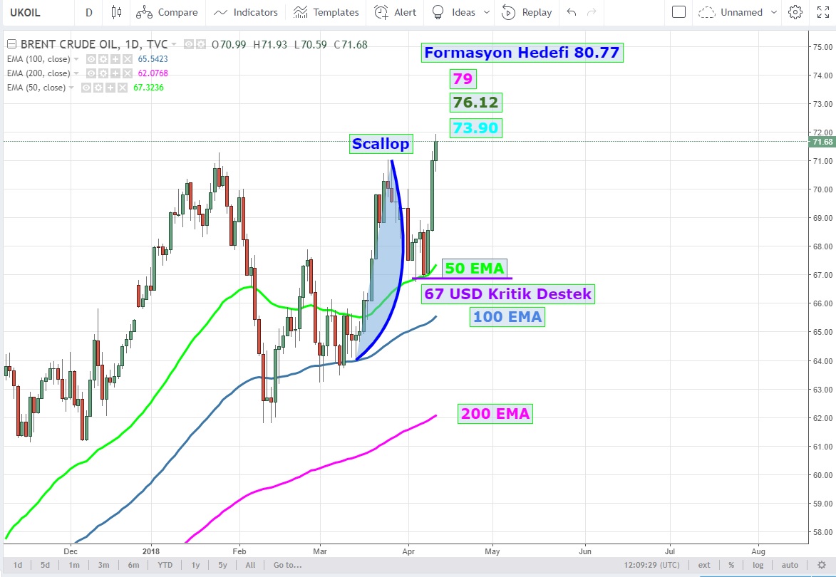 OPEC kesintileri, kaya gazı üretim mikarı, ve global büyümeye bağlı olarak arz talep dengesini oturtmaya çalışan Brent petrolde