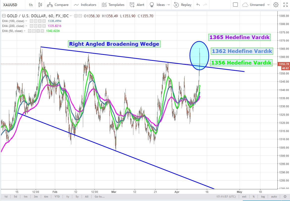 Gold Futures Haziran vadeli kontratları için sabah konuştuğumuz ara hedefler
