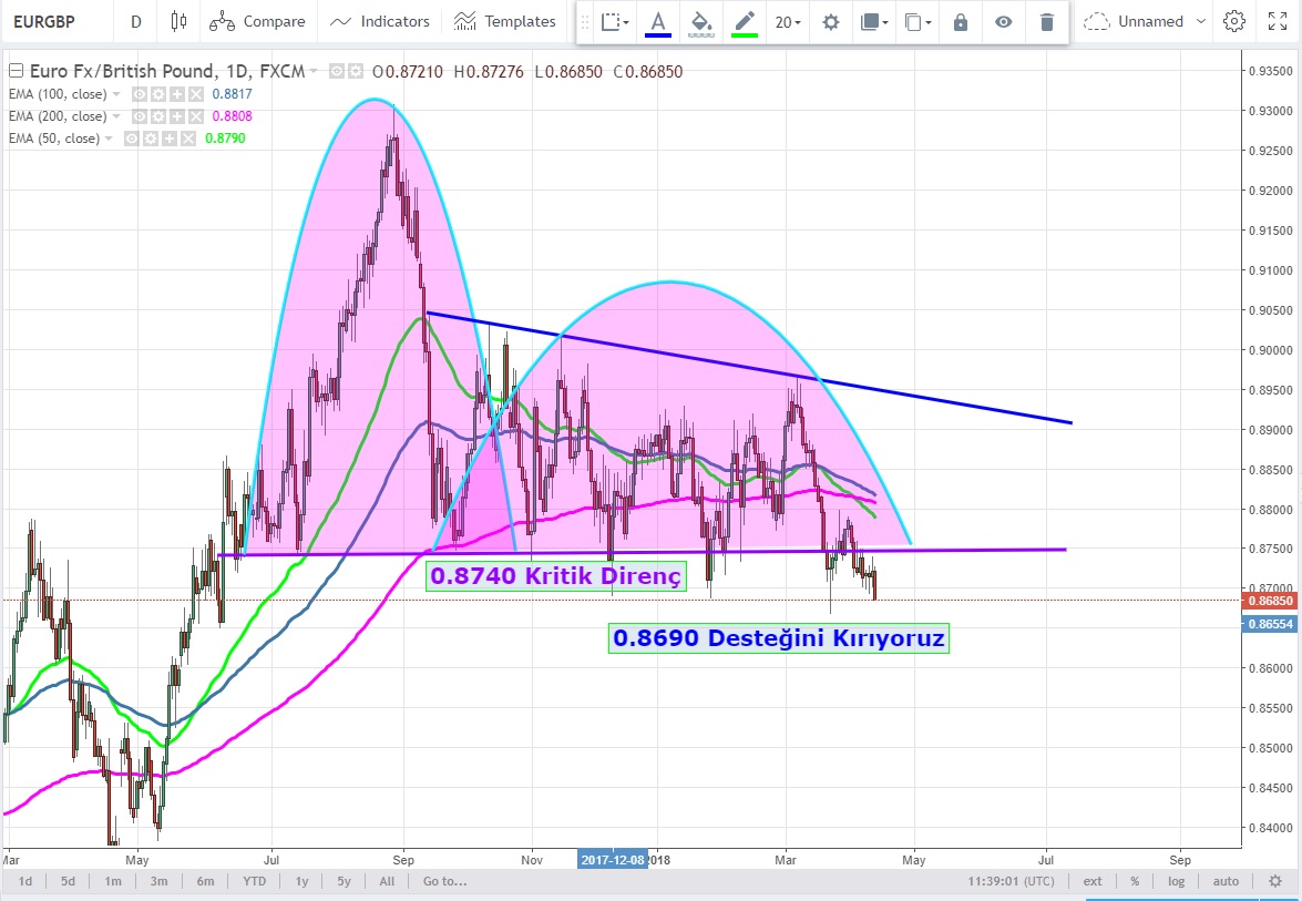 Kısa vadede 0.8740 üzeri kapanışlar formasyonu bozacaktır