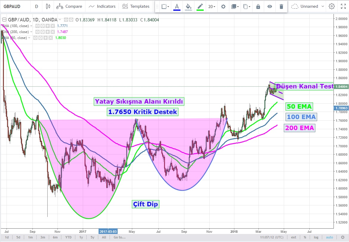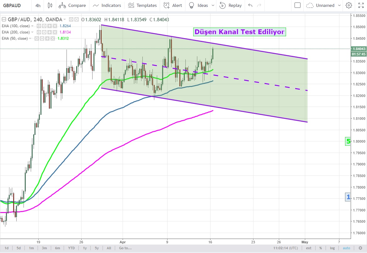 Daha kısa vadede ise düşen kanalı test eden GBPAUD aktif vade kontratlarında 1.8430 seviyesinin geçilmesi ile