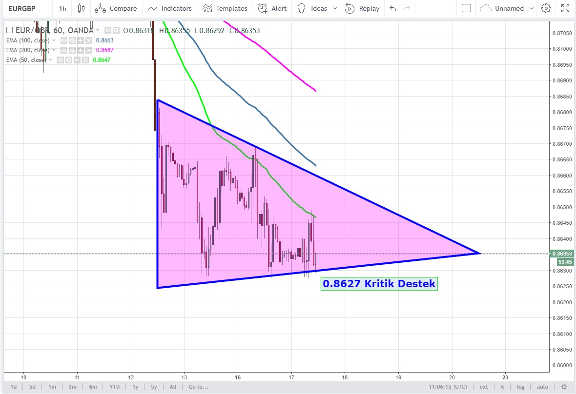 Kısa vadede sıkışma alanı oluşturan EURGBP Haziran vadeli kontratlarda 0.8620 dibi delinmediği sürece sıkışma devam edebilir