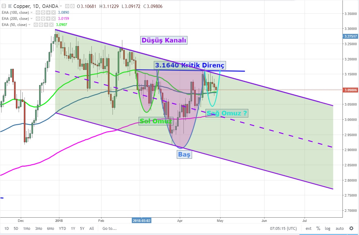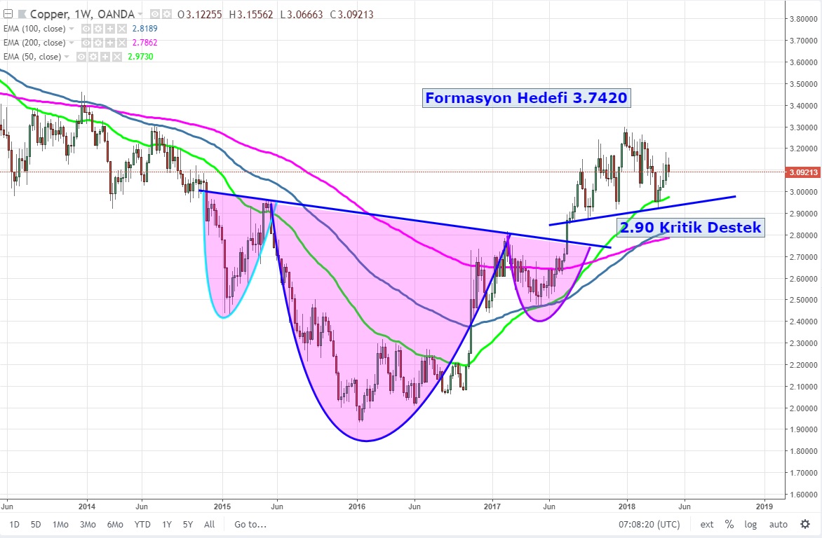 Sırası ile 1.94 ve 2.46 diplerinde tutunan emtianın 2.77 direncini kırması ile orta vadeli trendi değiştirdiğini görüyoruz
