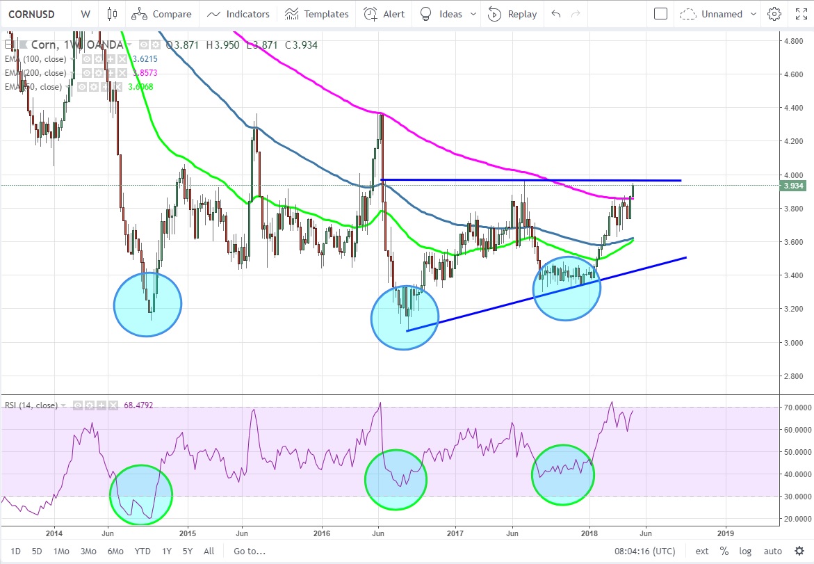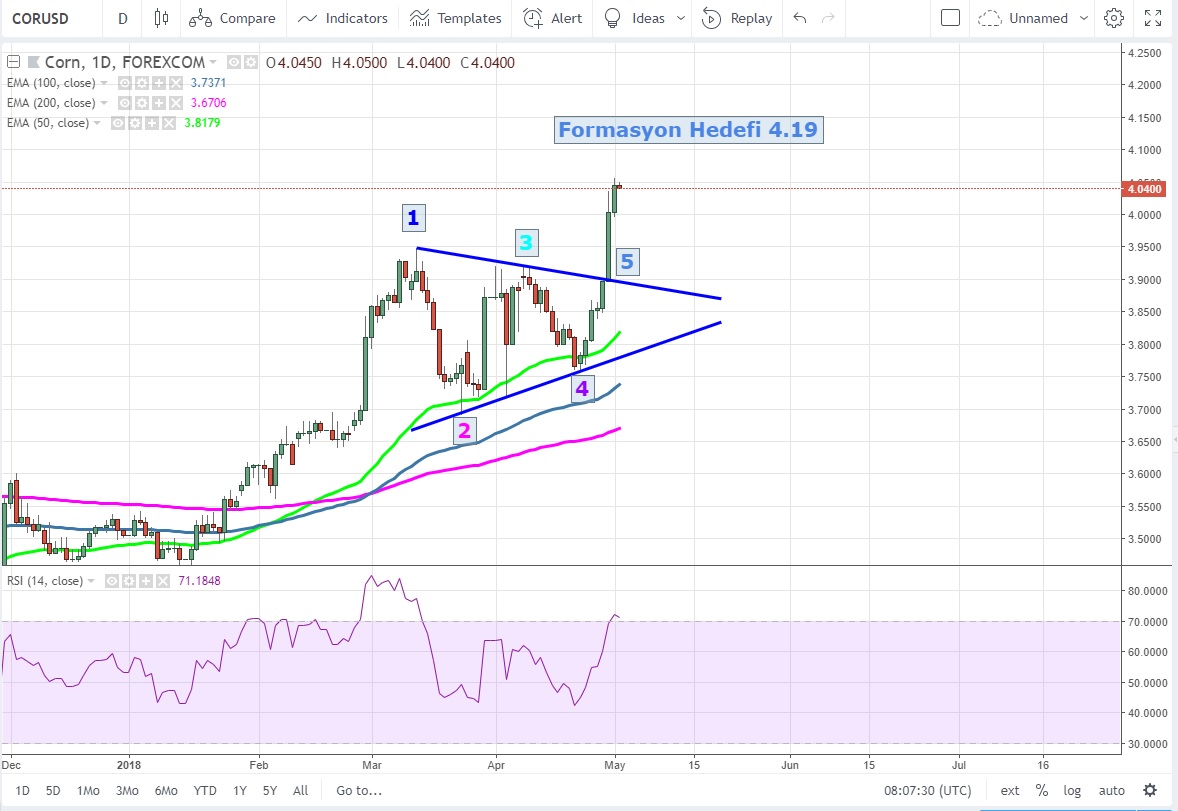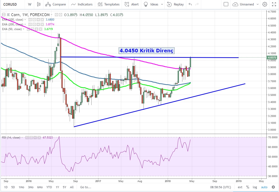 Bu gelişmeler eşliğinde Corn Futures aktif vadeli kontratlarına teknik olarak bakarsak