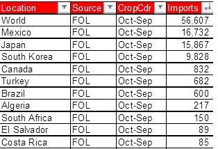 2017/18 majör ticaret dengesindeki değişime göre Arjantin ve Brezilya üretimde kesintiye giderken, İran, Malesya, Tayvan, Maksika ve Şili 'nin ithalatı azaltıcağı ancak bu miktarın Bangladeş ve Türkiye tarafından dengeleneceği ifade edilmekte