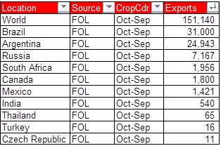 Bu durumda Arjantin ve Brezilya toplam üretim miktarı bu yıl için 2016/17 'deki rekor üretim miktarının 14.5 milyon ton altında kalabilir