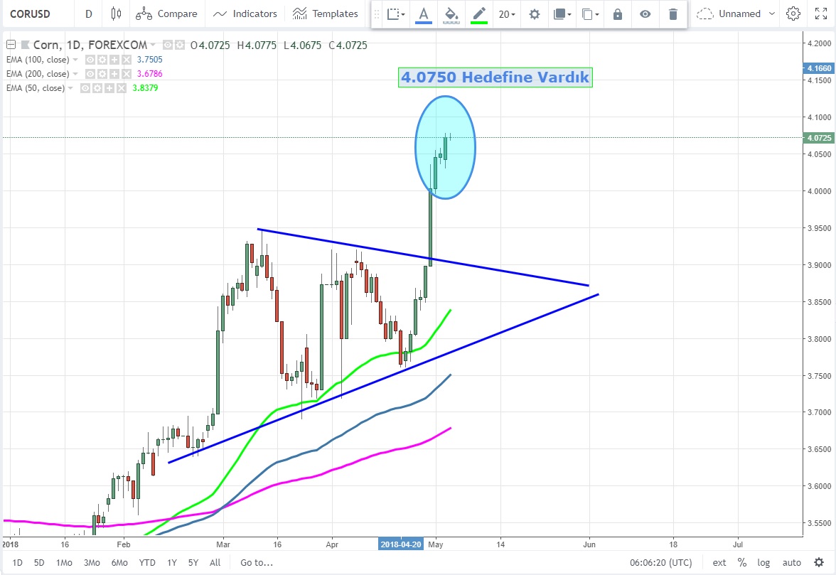 Mısır vadeli kontratları için konuştuğumuz "Dipten Dönüş Başlıyor mu ?" analizinde ki ilk hedef 4.0740 seviyesine vardık https://www.tradeall.com/teknik-analiz-detay/6026/corn-futures---dipten-donus-basliyor-mu-?a=b