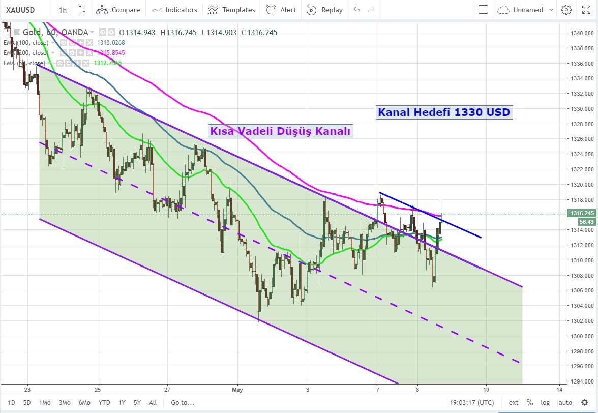 Daha kısa vadede ise düşüş kanalını kıran Haziran vadeli aktif kontratların formasyon hedefi 1330 USD olarak öne çıkıyor