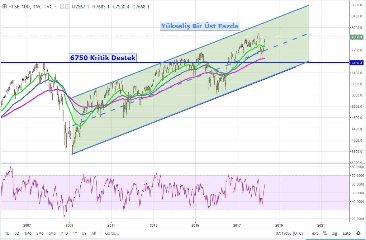 Haftalık grafiklerde yükseliş kanalında bulunan endeks bir üst faza geçiyor görüntüsünde