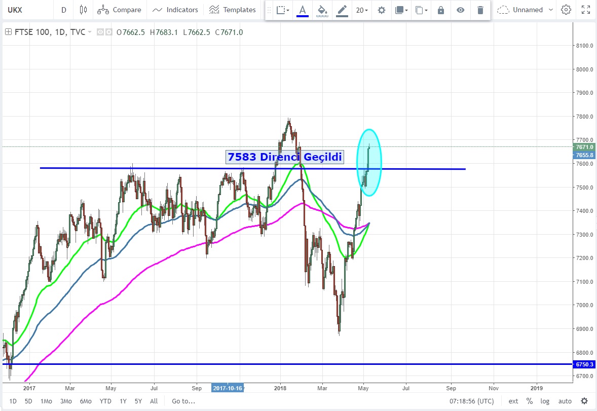 Günlük grafiklerde ise kritik 7383 direnci dün kuvvetli bir bar ile geçildi.