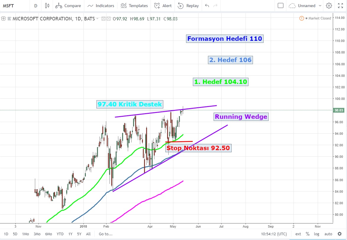 Günlük grafiklerde oluşturduğu running wedge 97.40 desteği üzerinde günlük kapanış yaptığı sürece sırasıyla