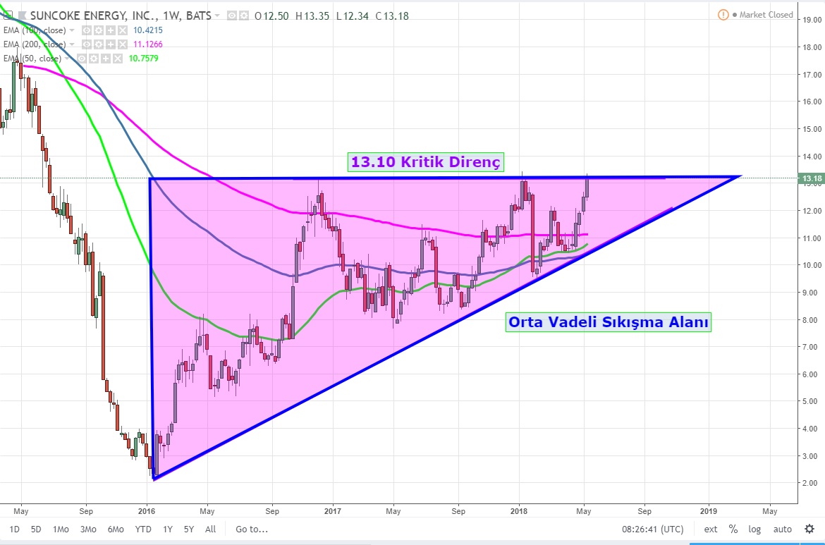 13.10 USD direncinin kırılması ile hem uzun vade hem de kısa vadede tetiklenecek olan formasyonlar Suncoke hisse senedinde kuvvetli bir potansiyel harekete işaret ediyor