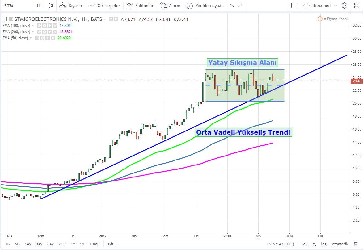 STMicroelectronics hem temelde ki olumlu gelişmeler hem de teknik olarak hareket hazırlığında bulunması ile ilgi çekici