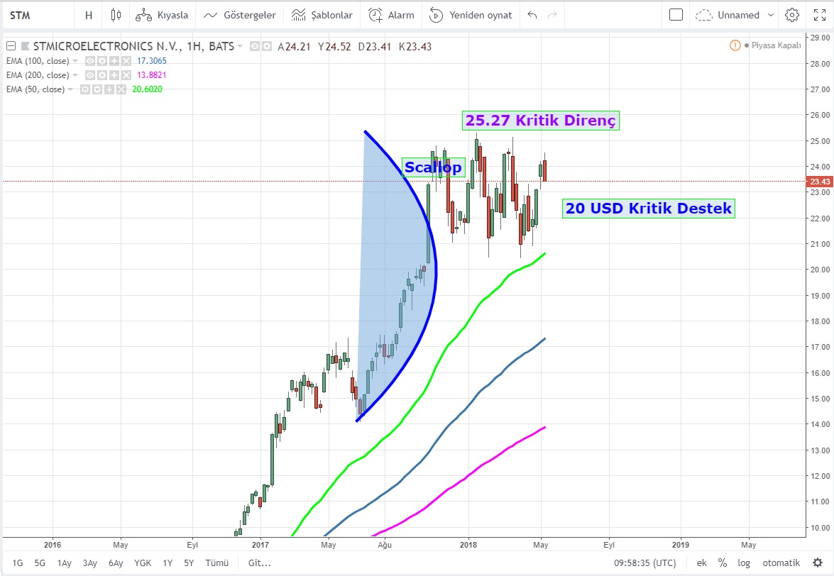 Scallop oluşturan hisse senedi 25.27 üzeri haftalık kapanışlarda formasyonu tetikleyecek ve sırası ile