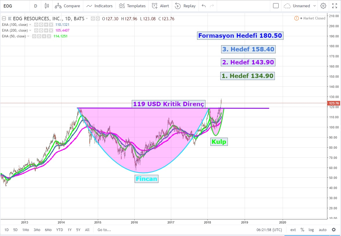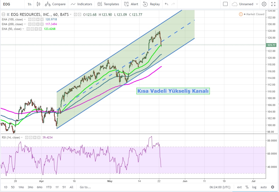 Global hisse Senedi raporunda yayinladığımız EOG Resources hisse senedinde 119 USD seviyesinin geçilmesi ile başlattığımız uzun pozisyon önerisi 128 USD seviyesine yükseldi. Dün endekslere gelen satışlar ile birlikte kapanış ise 123.77 USD seviyesinden gerçekleşti https://www.akyatirim.com.tr/apps/pdfviewer/globalhisseler/46913809-7bda-4f20-bec1-861f40497c84.pdf