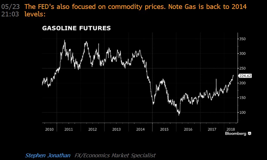 FED üyeleri aynı zamanda emtia fiyatlarına odaklanıyor. Gazolin fiyatları 2014 senesine geri dönmüş durumda