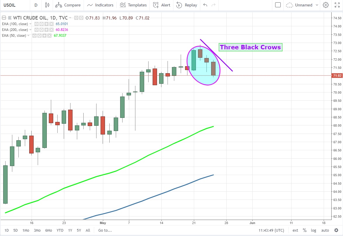 Günlük grafiklerde bu gün kapanışının 71.97 USD altında olması durumunda three black crows oluşacak olan emtiada trailing stop seviyeleri 72 USD 2ye çekerek risk sınırlamak iyi bir tercih olabilir