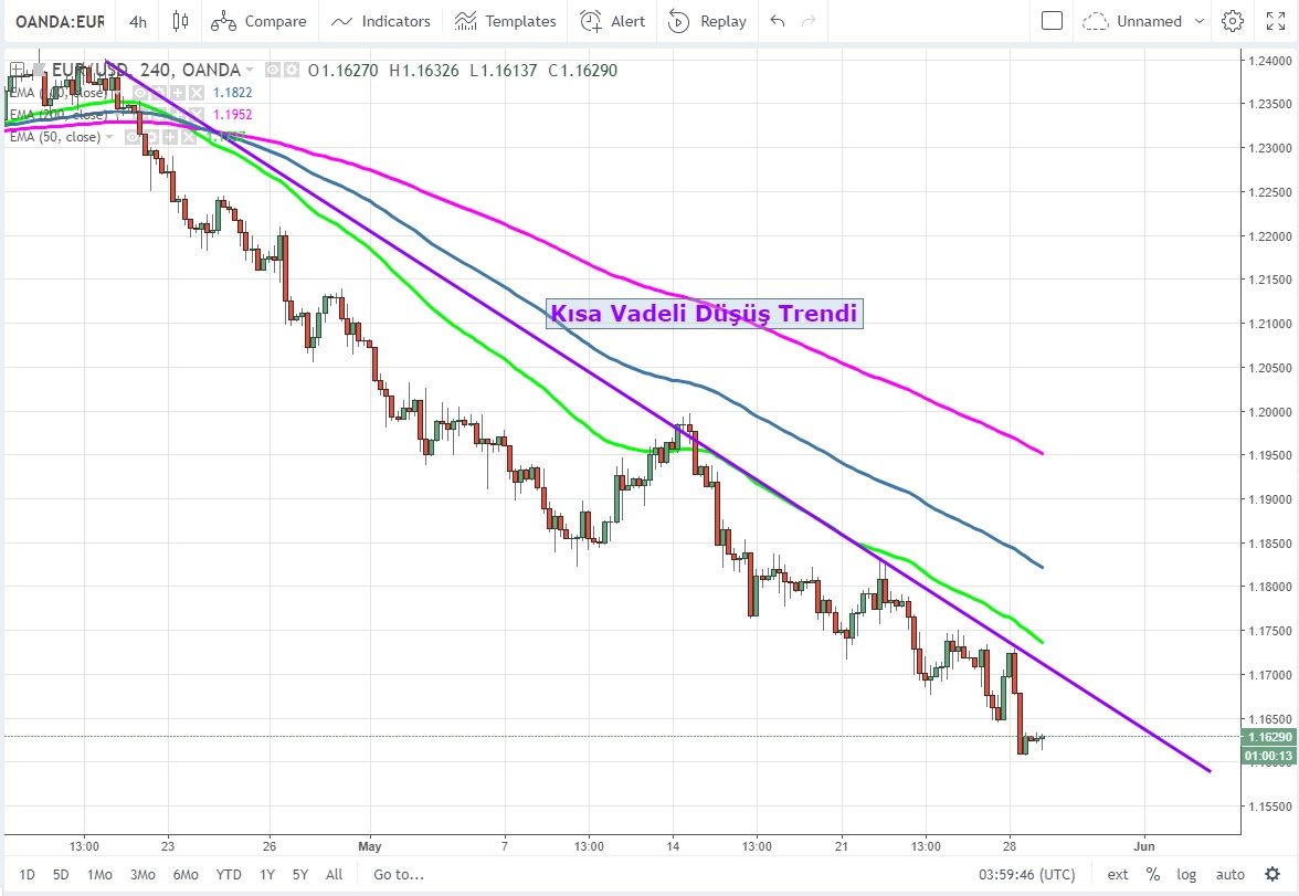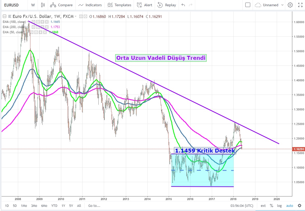 Uzun vadede düşüş trendini koruyan paritenin kritik desteği 1.1459 seviyesinde