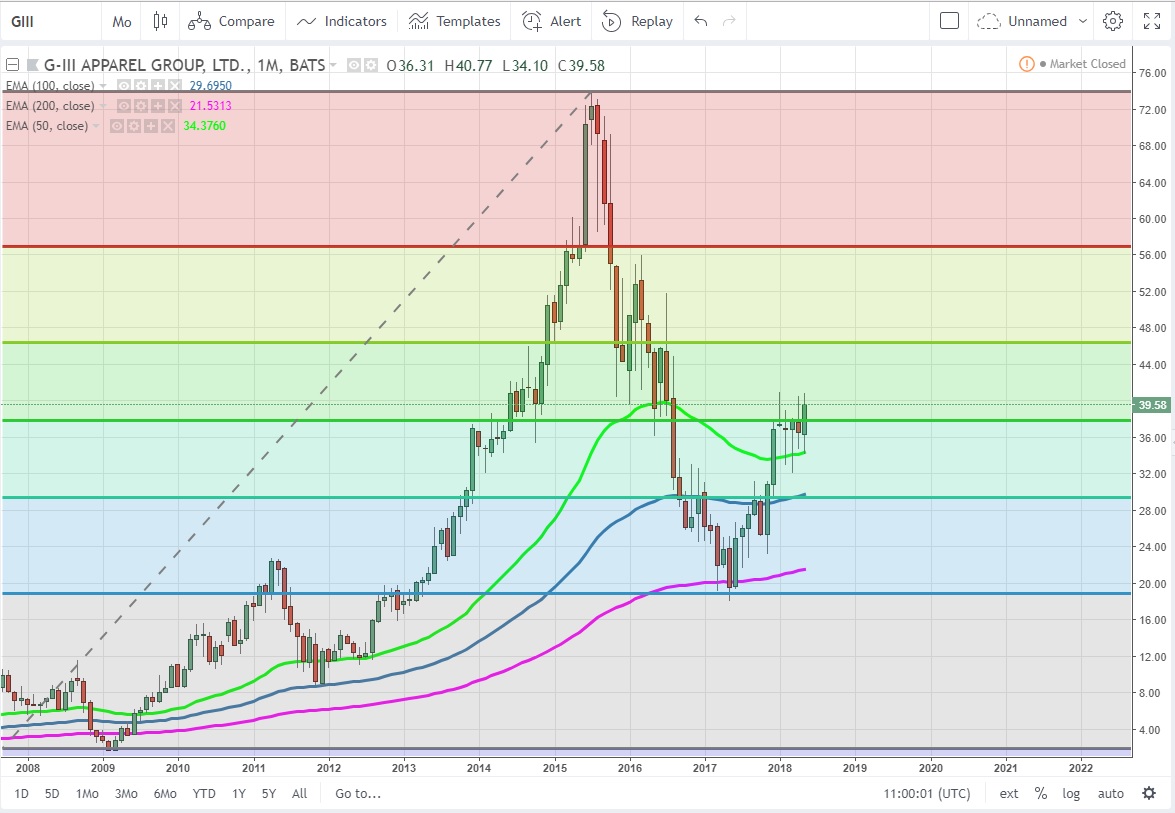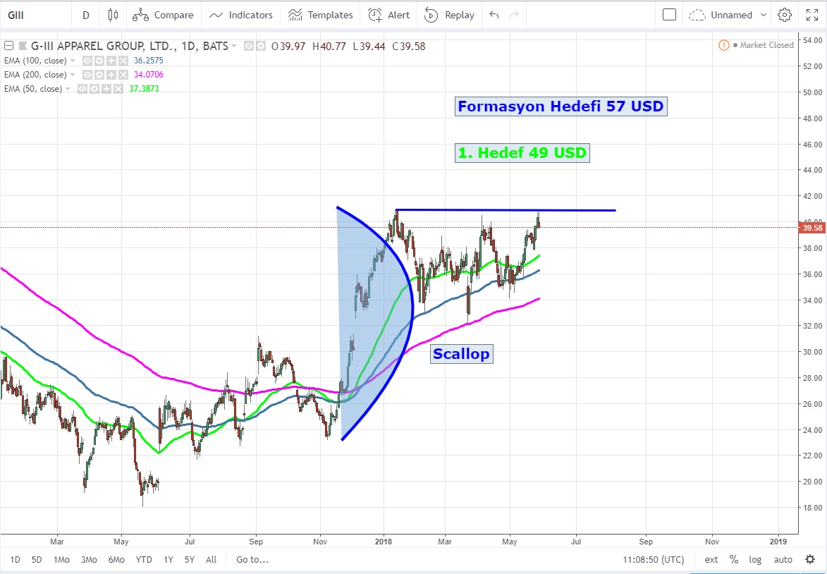 GIII hisse senedinde 41 USD seviyesinin geçilmesi ile sırası ile