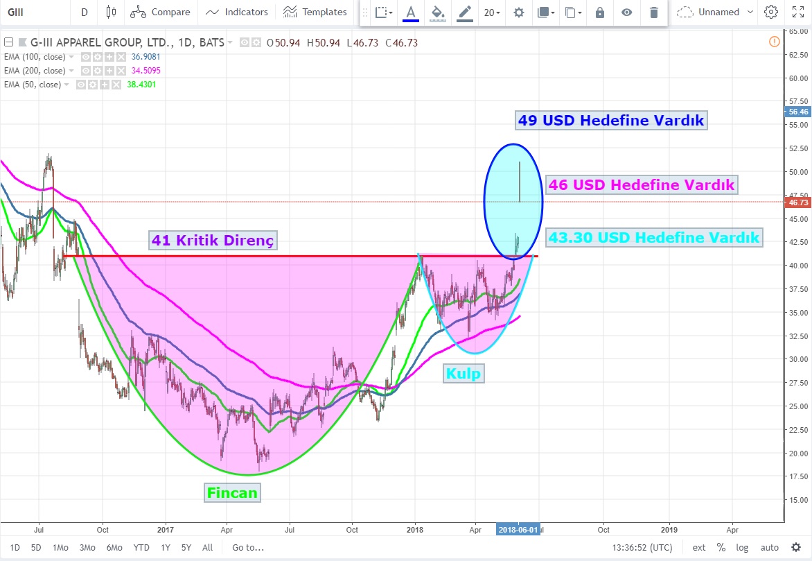 GIII hisse senedi için konuştuğumuz 2. ve 3. hedefler olan 46 ve 49 USD seviyelerine seans açılışı ile birlikte vardık https://www.tradeall.com/teknik-analiz-detay/6077/giii-hisse-senedi-analizi---orta-vadeli-konsolidasyon-ne-zaman-biter--?a=b