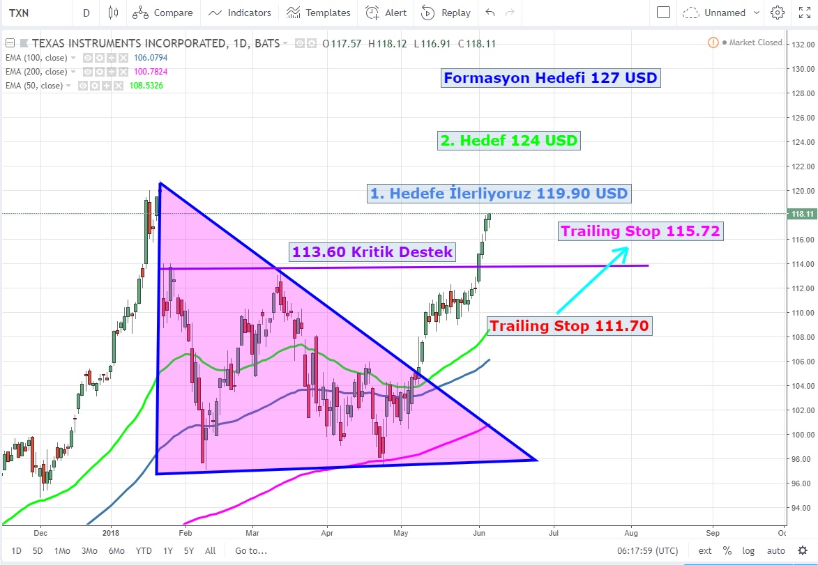 Dün kapanışını 118.11 USD 'den yapan (Gün Yükseği 118.12 USD) hisse senedi teknik olarak güçlü kalmaya devam ediyor.