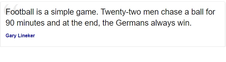 "Futbol basit bir oyun, 22 kişi 1 topun peşinden 90 dakika koşar ve sonunda Almanlar kazanır" sözü ile dile getirmişti.