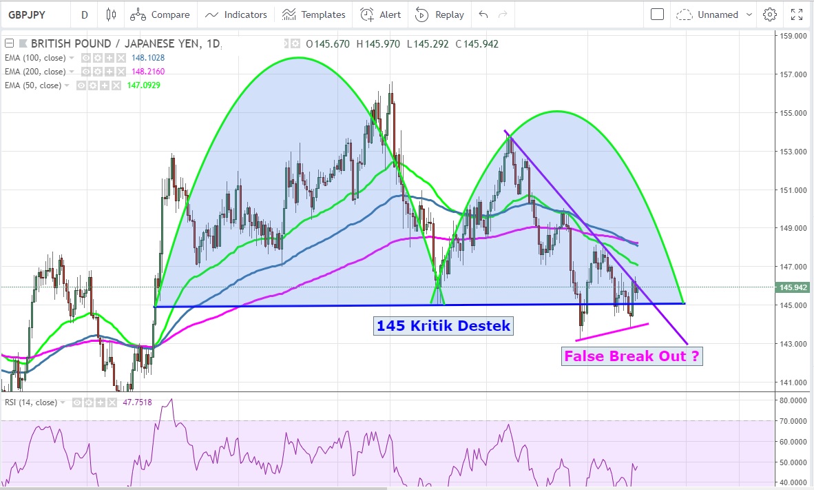 Günlük grafiklerdeki çift tepe 145 desteği altına sarksa da burayı kırmakta başaraılı olamadı ve şu an için false break out görüntüsü veriyor