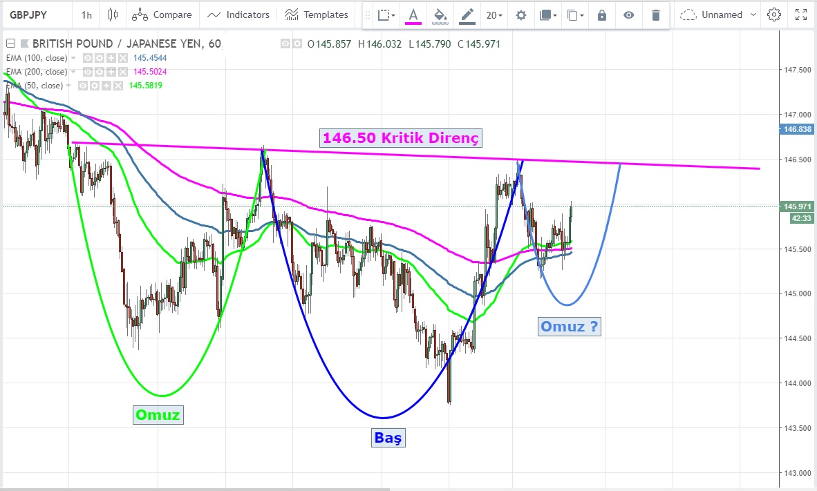 146.50 üzeri saatlik kapanışlarda sağ omuz tamamlanarak formayon çalışmaya başlayabilir