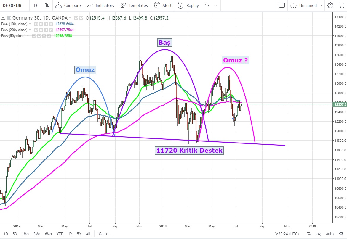 Yine günlükte potansiyel sağ omuz kesitine indiğimizde 12540 desteği kritik. Kırılması durumunda potansiyel çift tepe tamamlanacak ve DAX aktif vadelilerinde teknik olarak düşüş hızlanacaktır